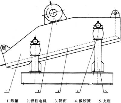 - 由于激振器布置在篩箱重心的上方,故篩箱兩端橢圓長(zhǎng)軸成下八字形,且給料端橢圓長(zhǎng)軸的上端朝向排料方向,有利于給到箱機(jī)上的物料迅速散開,而排料端橢圓長(zhǎng)軸上端逆著排料方向,減低物料運(yùn)動(dòng)速度,有利于難篩物料透篩,且圓弧狀的篩面又增大了篩機(jī)的有效面積,從而可以提高其處理能力。